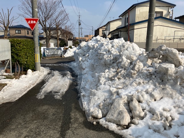 我が家の近くの公園のそばや道路沿いにたくさんの雪がうず高く積まれています。除雪をやっている知人の業者に聞いたら「もう融けるまでそのままだよ・・・」と言われて、啞然としました!!私が朝、歩いていくと、その雪の山から小学生の子どもが急に顔を出しました。これで、よく事故がおこなないものだなぁ~と思いました。いくら予算がなくなったといっても、この状態を見過ごしておくのはダメでしょう・・・市長が代わって予算削減を中心に行っているのは分かりますが、出さなきゃダメなものは出してください・・