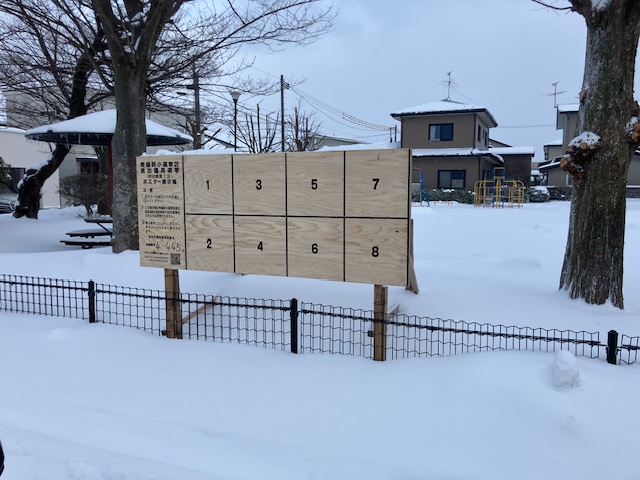 それにしても、雪が多くて看板設置に苦労しているようです。我が家の近くの看板が雪に埋もれていました・・・