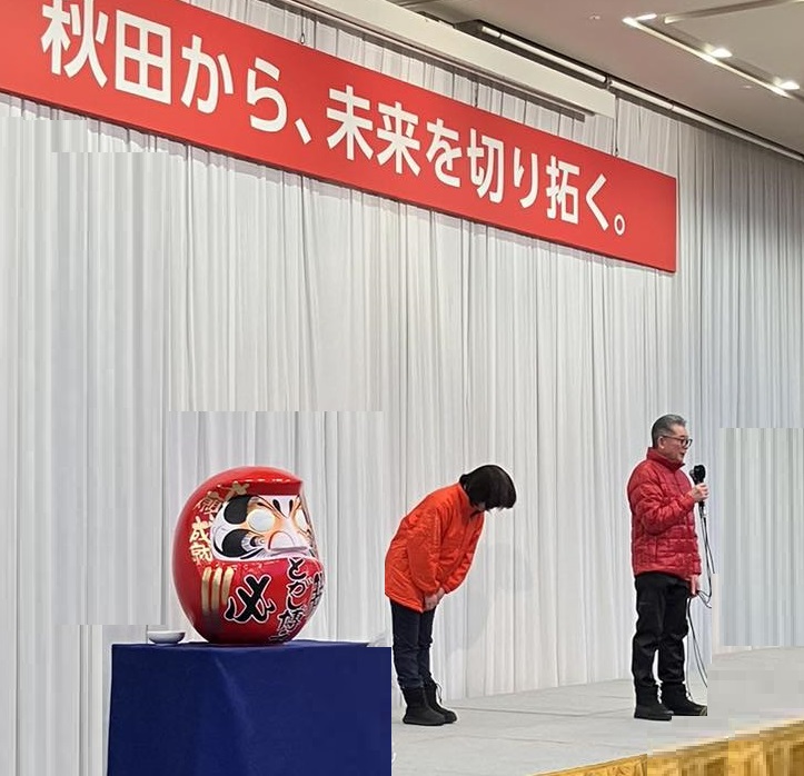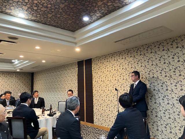 今日は秋田駅前のANAクラウンプラザホテルにて秋田県電子工業振興協議会-新春の集いが16時半から行なわれました。はじめに日本貿易振興機構-秋田貿易情報センター所長の梅津所長が「不確実な時代の海外ビジネスへの取り組み~米国の関税政策と日本企業への影響」というテーマにて話をされていました。終了後、調査部の安東利華氏の補足説明が行われました。18時からは懇親会が行われて、鈴木健太知事の挨拶があり、乾杯となり、二次会にも行ってしまい、今日もついつい飲み過ぎました・・・・